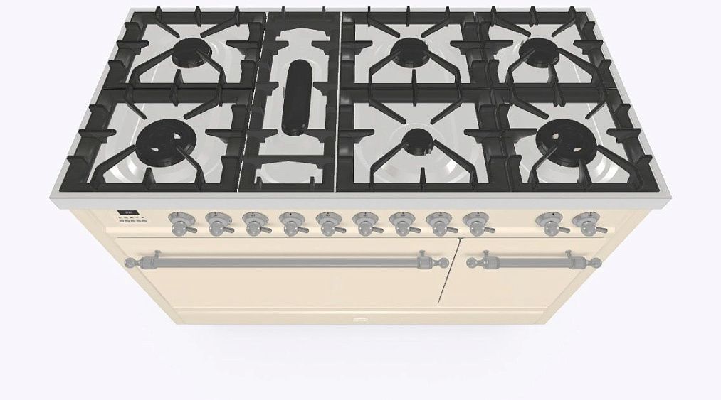 • Тип конфорок: 7 газовых, горелка для рыбной кастрюли, двухконторная конфорка DUAL