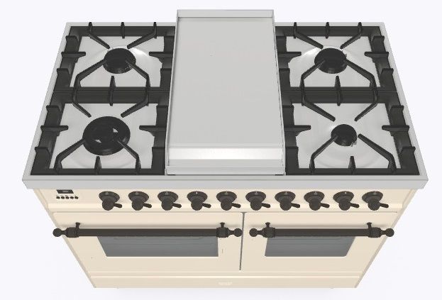 • Тип конфорок: 4 газовые конфорки, Dual конфорка, жарочная поверхность Fry Top