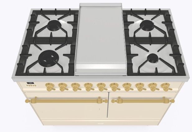• Тип конфорок: 4 газовые конфорки, Dual конфорка, жарочная поверхность Fry Top