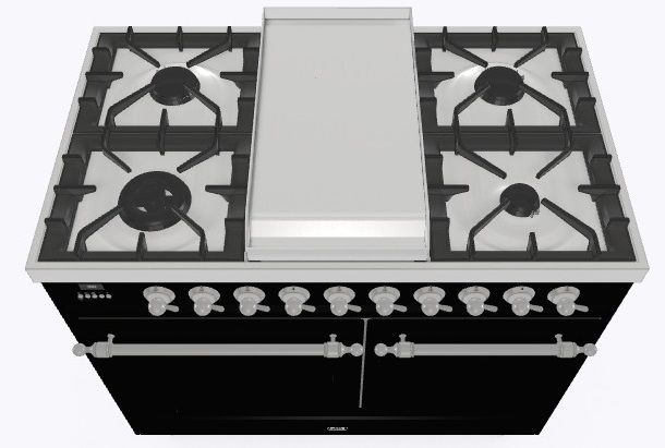 • Тип конфорок: 4 газовые конфорки, Dual конфорка, жарочная поверхность Fry Top