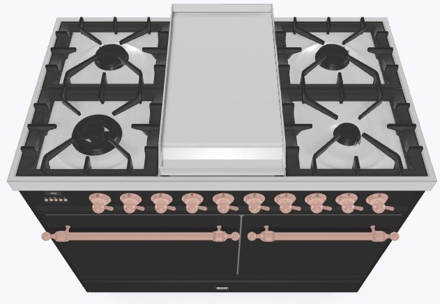 - Тип конфорок: 4 газовые конфорки, WOK конфорка, жарочная поверхность Fry Top