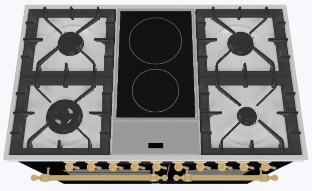 2 индукционные, 4 газовые, 1 Dual конфорка