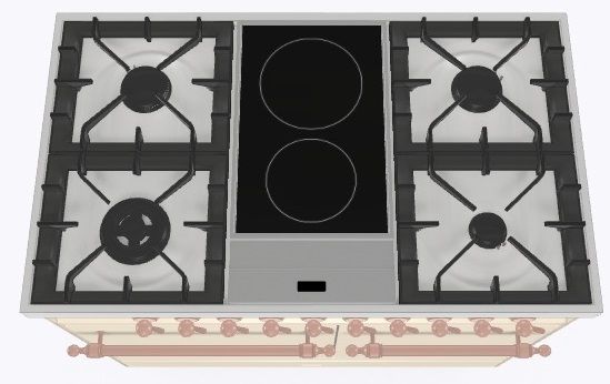 2 индукционные, 4 газовые, 1 Dual конфорка
