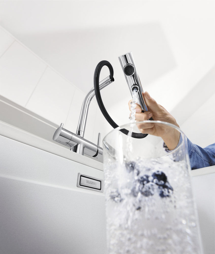 Смеситель с подключением фильтра FONTAS-S II 526672 от Blanco воплощает философию бескомпромиссного качества, инновационного дизайна и функциональности, превращая самое активное место на кухне в продуманный, эргономичный и эстетичный центр для приготовления пищи.